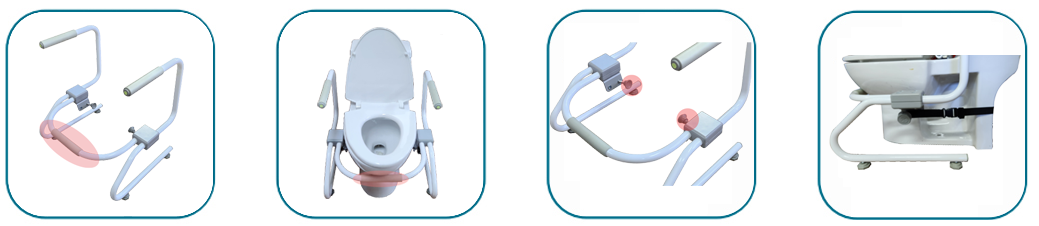 보조벨트를 변기 후면에 감싸면서 양끝을 안전손잡이에 연결시켜 고정을 보강합니다.